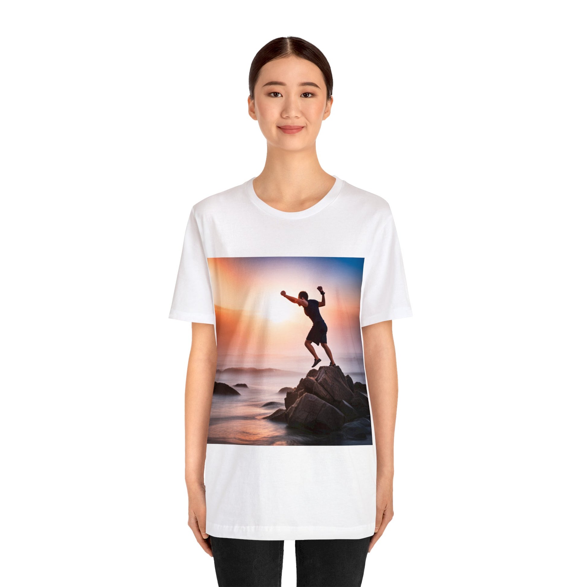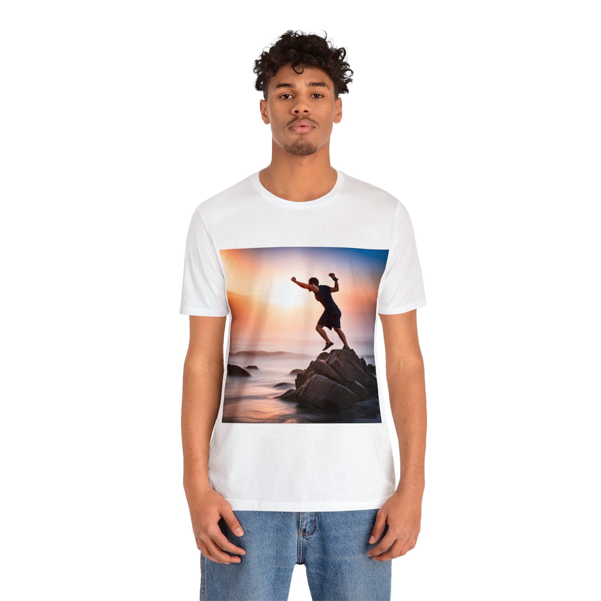 Unisex Jersey Short Sleeve Tee Guy on rock